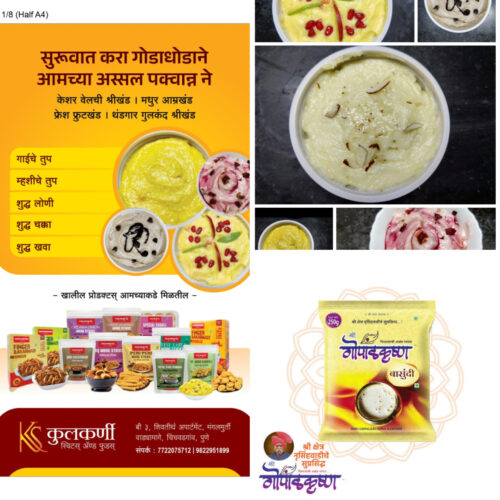 Keshar elaichi,Amrakhand, gulkand shreekhand, fruit shreekhand, basundi, namkeen