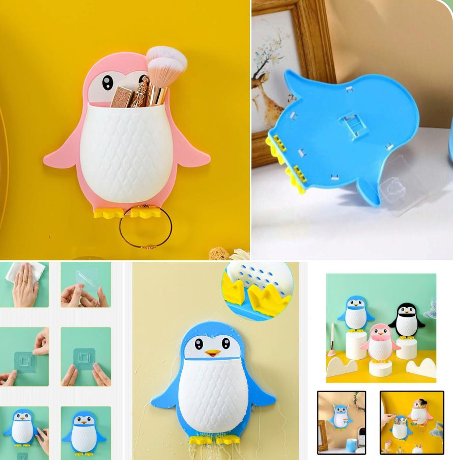 Add a playful yet practical element to your workspace or dressing area with the Penguin Holder, designed to keep your essentials neatly organized and within easy reach.